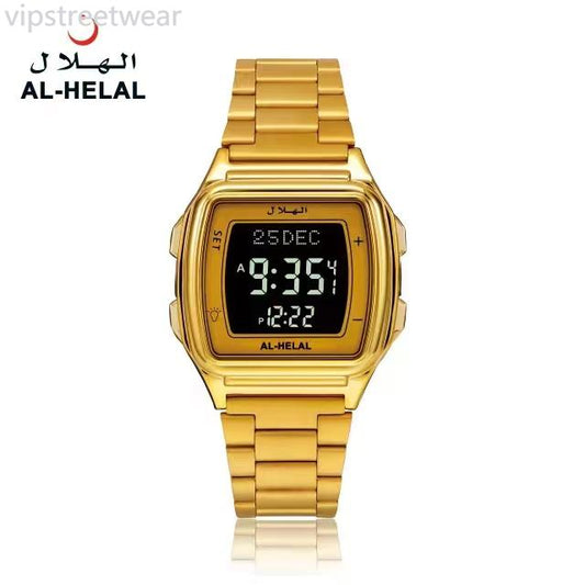 VIPstreetwear AL-HELAL Lelaki Wanita Digital Arah Kiblat Islam Azan Kompas untuk Solat Muslim Jam Tangan Keluli Tahan Karat 2024'S