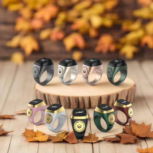 2024 Newest Collection Titanium larger screen Than Before 55mah 7days standby 3Size in 1box(Lcoal Seller)Iqibla Jood Zikr Ring