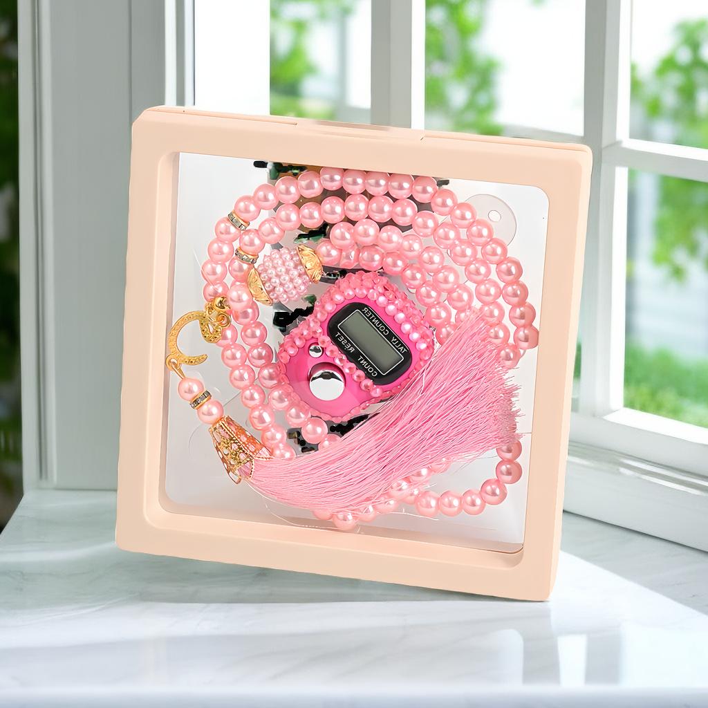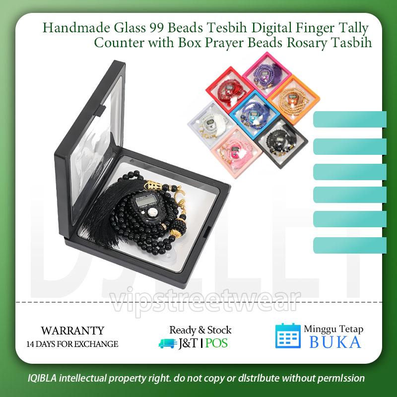 Handmade Glass 99 Beads Tesbih Digital Finger Tally Counter with Box Prayer Beads Rosary Tasbih Muslim counter