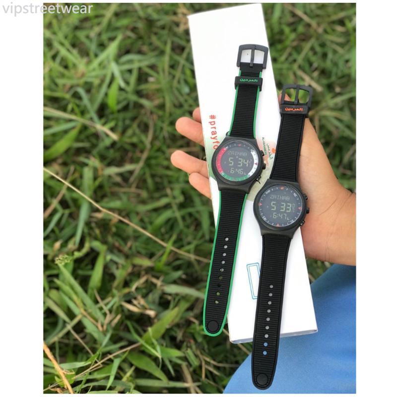VIPstreetwear Jam Azan Masjid dengan Lampu Latar Hijir Kalendar Gregorian Arah Kiblat Jam Waktu Subuh 2024'S